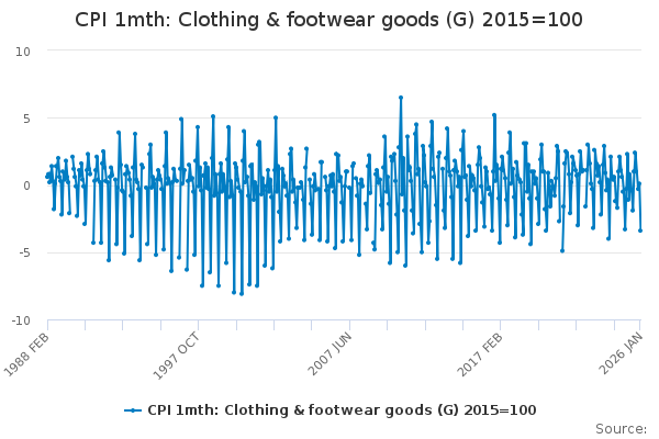 Download this time seriesCPI 1mth: Clothing & footwear goods (G) 2015=100