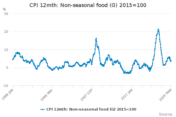 Download this time seriesCPI 12mth: Non-seasonal food (G) 2015=100
