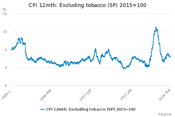 Download this time seriesCPI 12mth: Excluding tobacco (SP) 2015=100