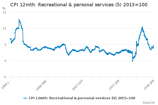 Download this time seriesCPI 12mth: Recreational & personal services (S) 2015=100