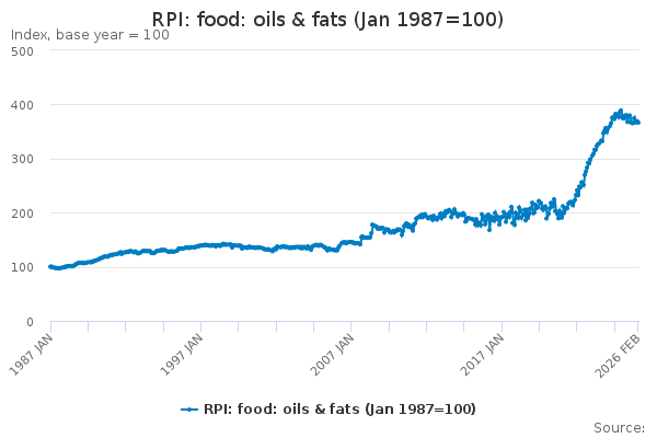 Download this time seriesRPI: food: oils & fats (Jan 1987=100)