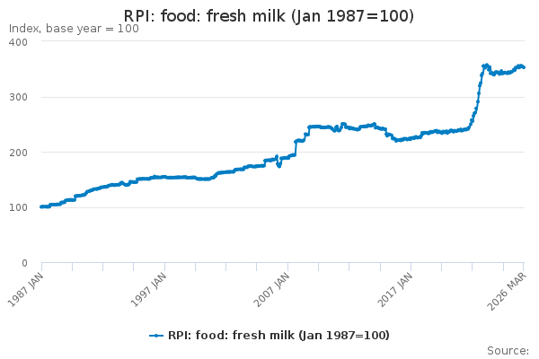 Download this time seriesRPI: food: fresh milk (Jan 1987=100)