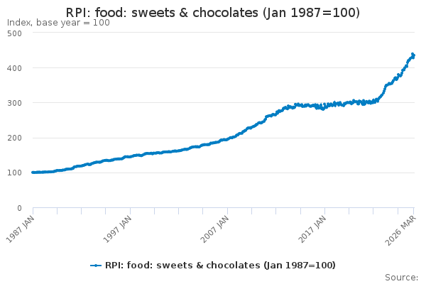 Download this time seriesRPI: food: sweets & chocolates (Jan 1987=100)