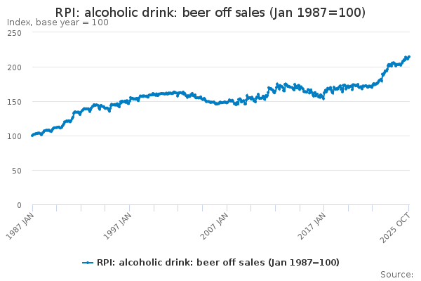 Download this time seriesRPI: alcoholic drink: beer off sales (Jan 1987=100)
