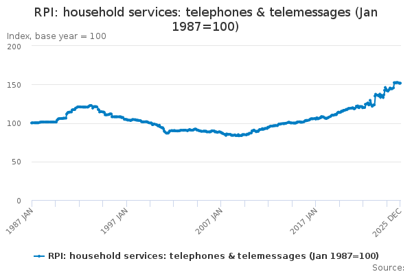 Download this time seriesRPI: household services: telephones & telemessages (Jan 1987=100)