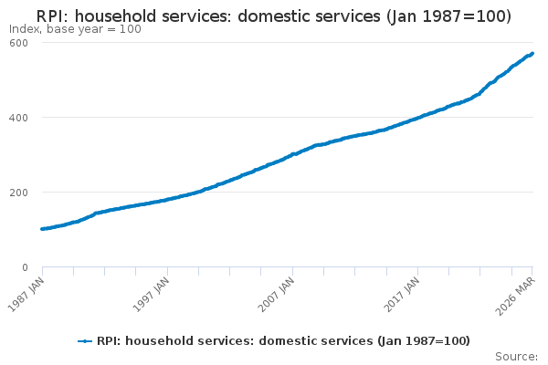 Download this time seriesRPI: household services: domestic services (Jan 1987=100)