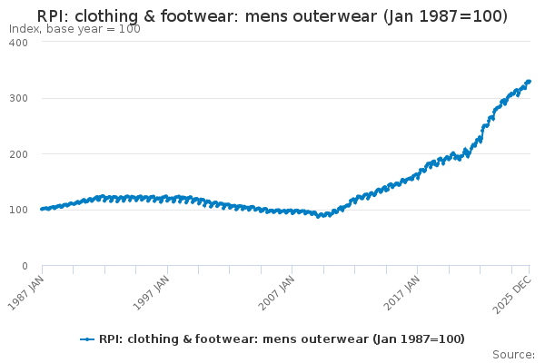 Download this time seriesRPI: clothing & footwear: mens outerwear (Jan 1987=100)