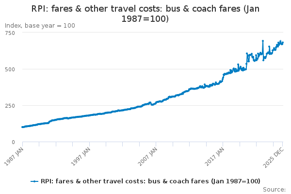 Download this time seriesRPI: fares & other travel costs: bus & coach fares (Jan 1987=100)