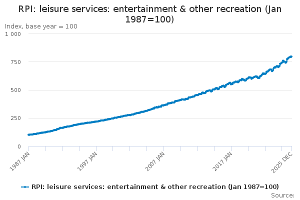 Download this time seriesRPI: leisure services: entertainment & other recreation (Jan 1987=100)