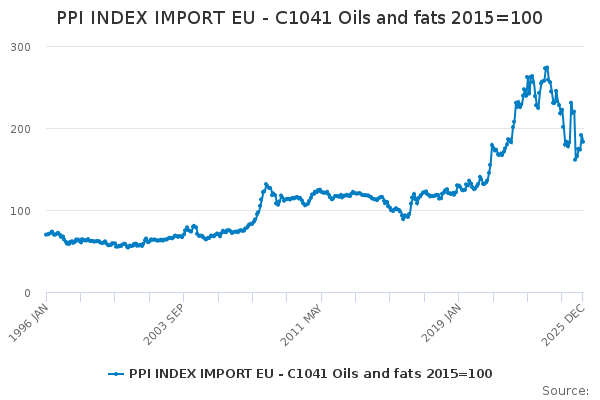 Download this time seriesPPI INDEX IMPORT EU - C1041 Oils and fats 2015=100