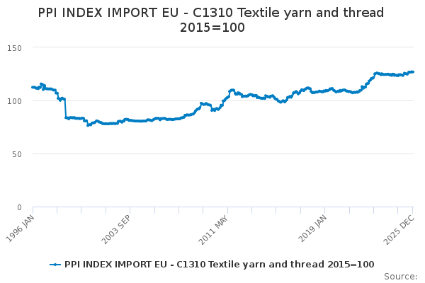 Download this time seriesPPI INDEX IMPORT EU - C1310 Textile yarn and thread 2015=100