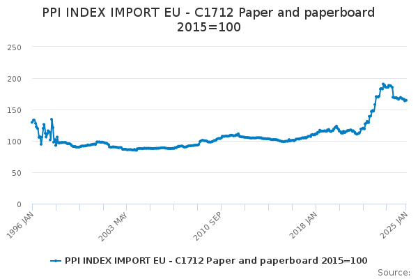 Download this time seriesPPI INDEX IMPORT EU - C1712 Paper and paperboard 2015=100
