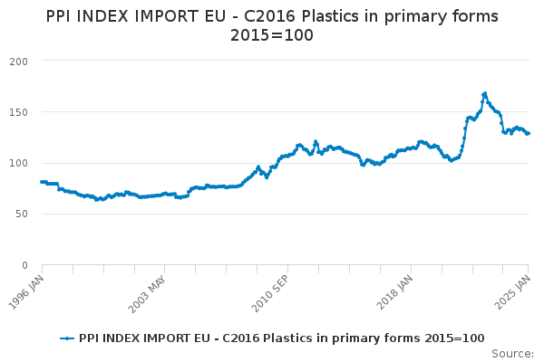 Download this time seriesPPI INDEX IMPORT EU - C2016 Plastics in primary forms 2015=100