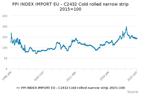 Download this time seriesPPI INDEX IMPORT EU - C2432 Cold rolled narrow strip 2015=100