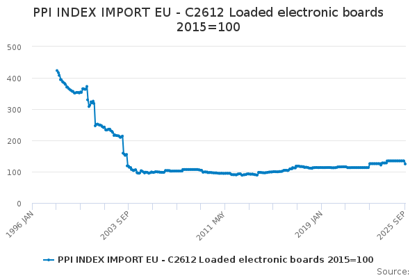 Download this time seriesPPI INDEX IMPORT EU - C2612 Loaded electronic boards 2015=100