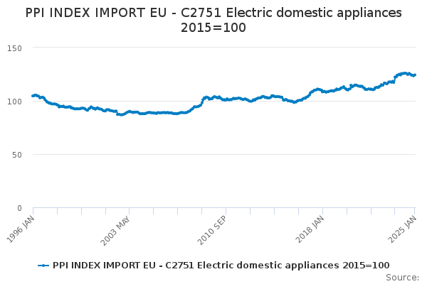 Download this time seriesPPI INDEX IMPORT EU - C2751 Electric domestic appliances 2015=100