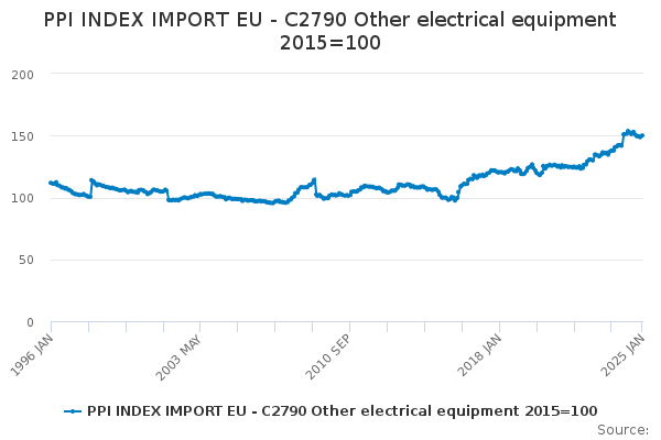 Download this time seriesPPI INDEX IMPORT EU - C2790 Other electrical equipment 2015=100