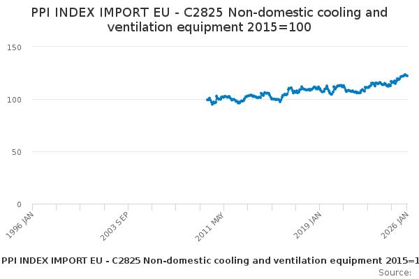 Download this time seriesPPI INDEX IMPORT EU - C2825 Non-domestic cooling and ventilation equipment 2015=100