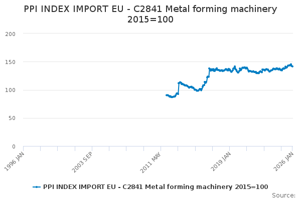 Download this time seriesPPI INDEX IMPORT EU - C2841 Metal forming machinery 2015=100