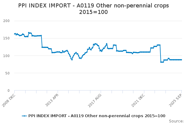 Download this time seriesPPI INDEX IMPORT - A0119 Other non-perennial crops 2015=100