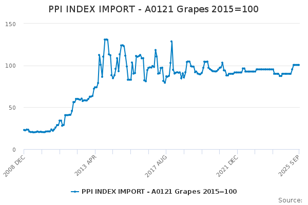 Download this time seriesPPI INDEX IMPORT - A0121 Grapes 2015=100