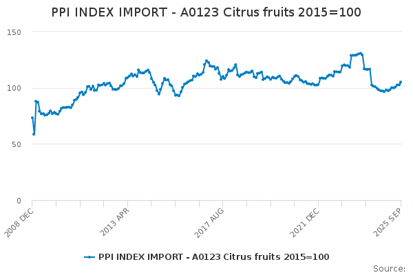 Download this time seriesPPI INDEX IMPORT - A0123 Citrus fruits 2015=100