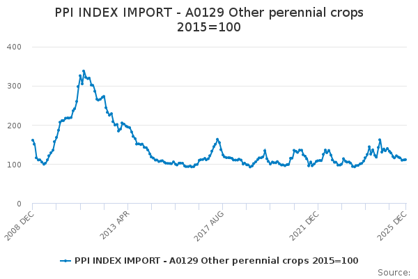 Download this time seriesPPI INDEX IMPORT - A0129 Other perennial crops 2015=100