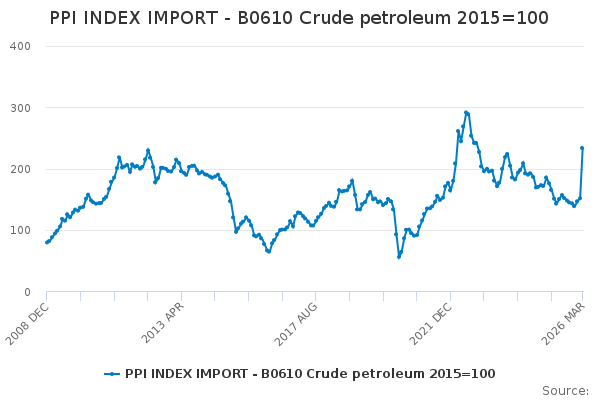 Download this time seriesPPI INDEX IMPORT - B0610 Crude petroleum 2015=100