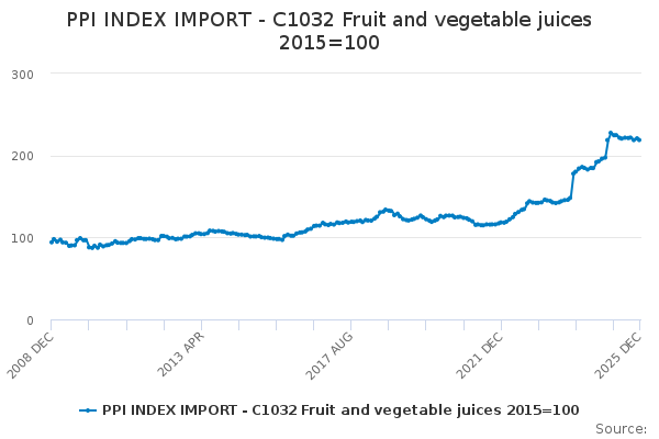 Download this time seriesPPI INDEX IMPORT - C1032 Fruit and vegetable juices 2015=100