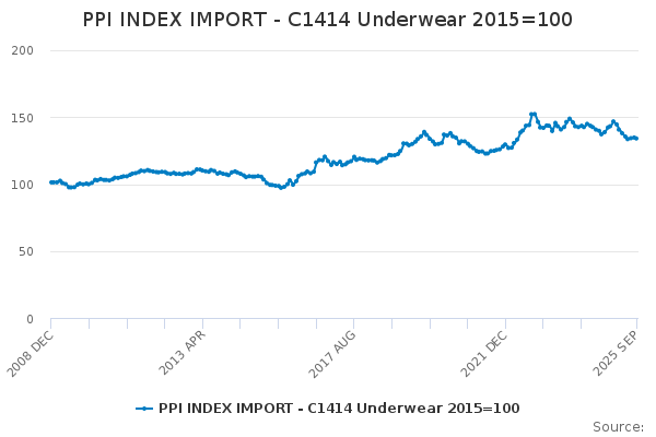 Download this time seriesPPI INDEX IMPORT - C1414 Underwear 2015=100