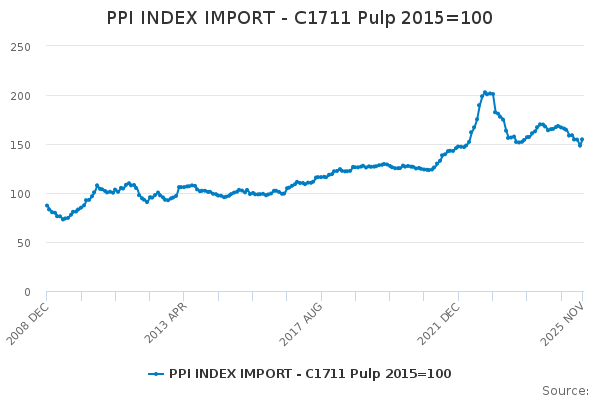 Download this time seriesPPI INDEX IMPORT - C1711 Pulp 2015=100