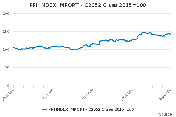 Download this time seriesPPI INDEX IMPORT - C2052 Glues 2015=100