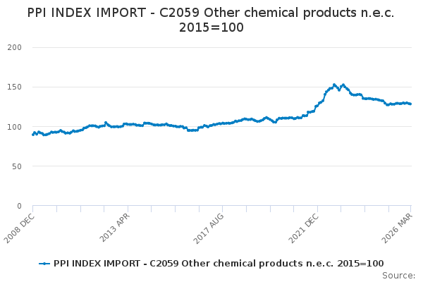 Download this time seriesPPI INDEX IMPORT - C2059 Other chemical products n.e.c. 2015=100