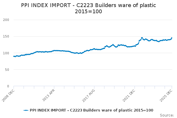 Download this time seriesPPI INDEX IMPORT - C2223 Builders ware of plastic 2015=100