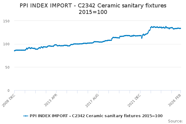 Download this time seriesPPI INDEX IMPORT - C2342 Ceramic sanitary fixtures 2015=100