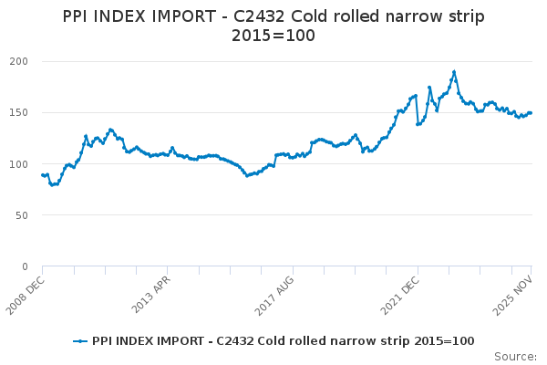 Download this time seriesPPI INDEX IMPORT - C2432 Cold rolled narrow strip 2015=100