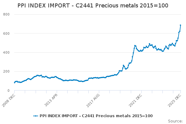 Download this time seriesPPI INDEX IMPORT - C2441 Precious metals 2015=100