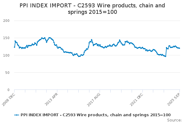 Download this time seriesPPI INDEX IMPORT - C2593 Wire products, chain and springs 2015=100