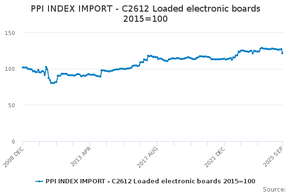 Download this time seriesPPI INDEX IMPORT - C2612 Loaded electronic boards 2015=100