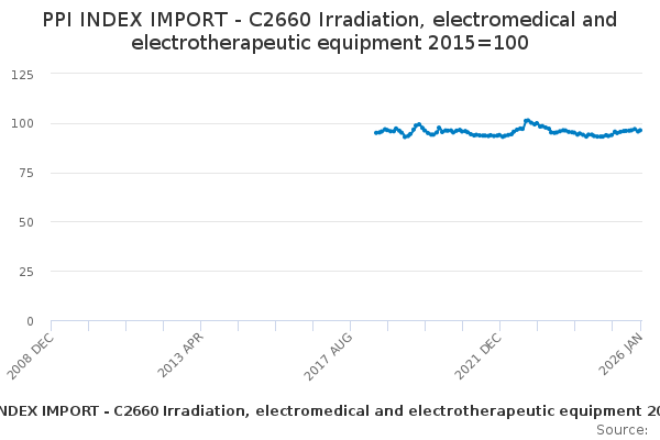 Download this time seriesPPI INDEX IMPORT - C2660 Irradiation, electromedical and electrotherapeutic equipment 2015=100