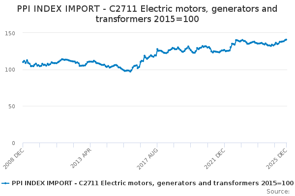 Download this time seriesPPI INDEX IMPORT - C2711 Electric motors, generators and transformers 2015=100