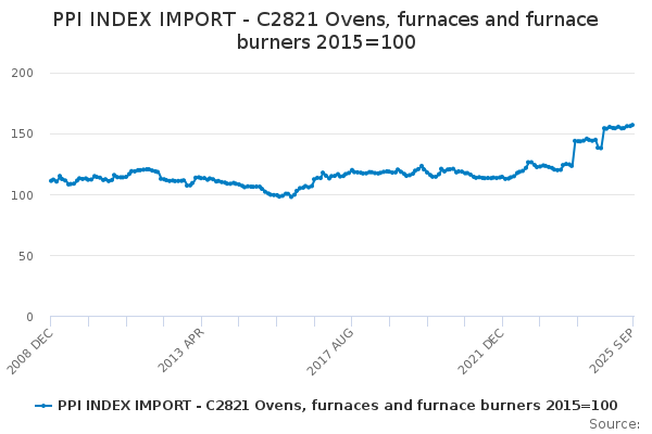 Download this time seriesPPI INDEX IMPORT - C2821 Ovens, furnaces and furnace burners 2015=100