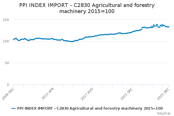 Download this time seriesPPI INDEX IMPORT - C2830 Agricultural and forestry machinery 2015=100