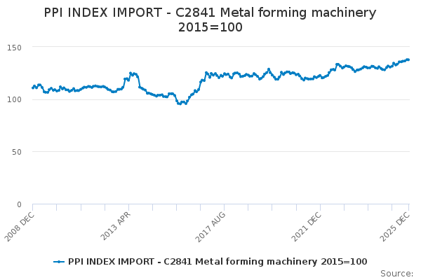 Download this time seriesPPI INDEX IMPORT - C2841 Metal forming machinery 2015=100