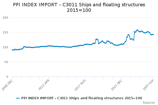 Download this time seriesPPI INDEX IMPORT - C3011 Ships and floating structures 2015=100