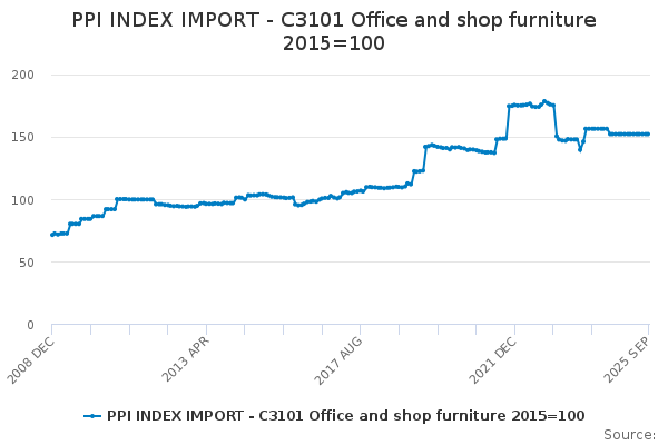 Download this time seriesPPI INDEX IMPORT - C3101 Office and shop furniture 2015=100
