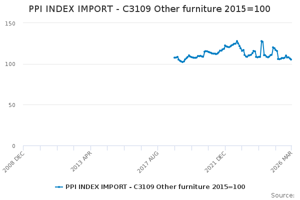 Download this time seriesPPI INDEX IMPORT - C3109 Other furniture 2015=100