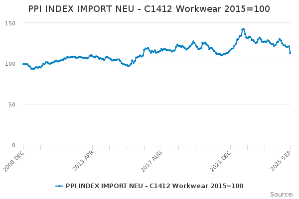 Download this time seriesPPI INDEX IMPORT NEU - C1412 Workwear 2015=100