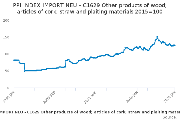 Download this time seriesPPI INDEX IMPORT NEU - C1629 Other products of wood; articles of cork, straw and plaiting materials 2015=100