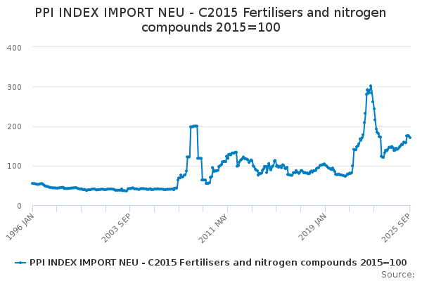 Download this time seriesPPI INDEX IMPORT NEU - C2015 Fertilisers and nitrogen compounds 2015=100